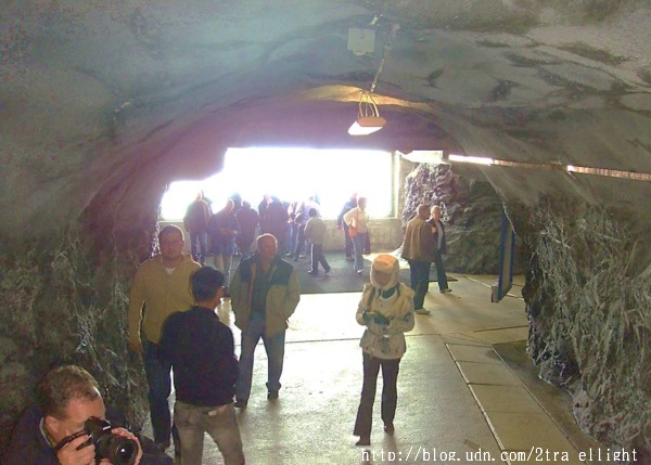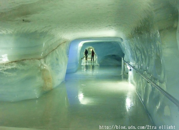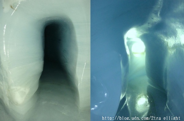 在雪地上玩了好一陣子, 轉移造訪阿雷奇冰河底下的冰宮(Ice Palace).要到冰宮必須經過幾個冰隧道,有一些隧道的路有點滑.