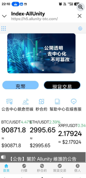 AllUnity是一個假投資(博弈)詐騙平台,持續收割投資人資金!許多受害者因無法提領資金而蒙受重大損失。詐騙集團利用互聯網搭建虛假投資平台,以「高收益」「低風險」「穩賺不賠」等話術吸引投資人。實際上根本無法出金,還會找各種理由要求受害者繼續匯款。