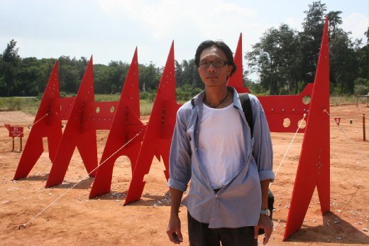 談及作品的創作理念時,吳惠民表示,靈感蛻變自金門遍佈的軌條砦,軌條砦的作用係兩岸局勢緊張混沌時,用來阻擋敵軍搶灘登陸的防禦工事,作品在形體上以較現代感的架構呈現,四周以綿繩和長寮的碉堡地景串聯,繩上則懸掛標示雷區勿入、小心危險的警告牌,強烈表達戰地氛圍,透過如鮮血般朱紅的色調,象徵島地過往歷經的烽火與流離。