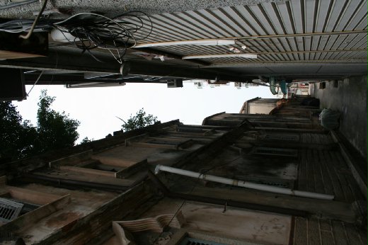 隱身於巷弄中另一幢由王慶雲所建的洋樓,樓上樓下各四房的格局,雖已坍蹋多時,但仍可想見當年的氣派模樣。