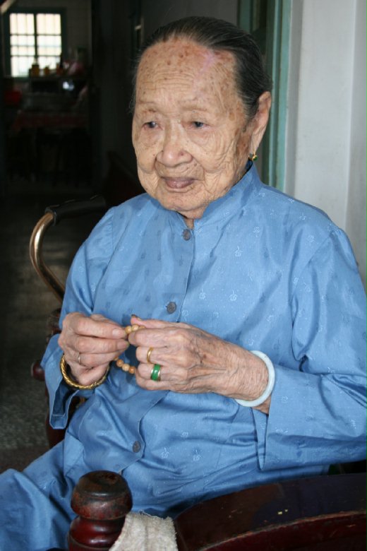 百歲人瑞羅方快,多子多孫,不過,因為家鄉工作難覓,大都赴台打拼,目前與年高八十二歲、也是滿身病痛的長子羅清派,留在烈嶼羅厝老家相依為命,每天數佛珠、默唸「阿彌陀佛」,成了寂寞歲月的最好依靠。