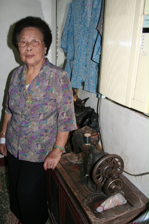 手搖的老式針車,安置於臥房一角,機身的紋路,已經被歲月的手模糊,洪甜桃偶而會靜坐於前,細細地撫著這具老針車,相較於她那不到一年緣份的丈夫,這具老式針車,也許更像是她的「老伴」。