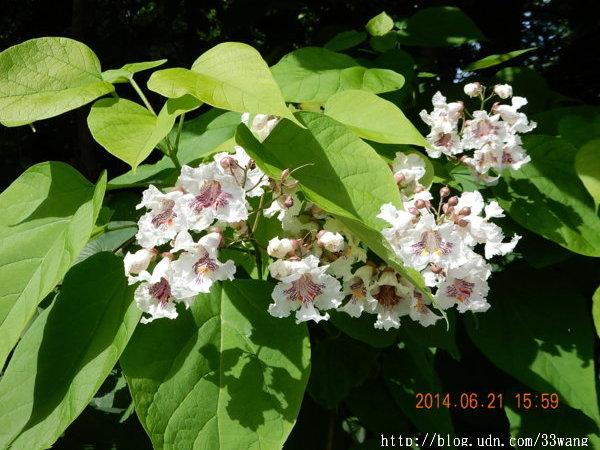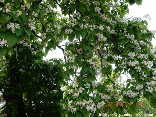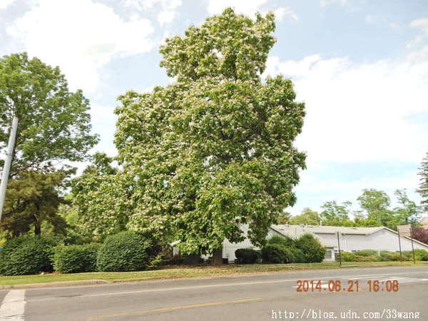 (謝謝一位潛水網友提供的資料,她叫northern catalpa,中文名稱"黃金樹")