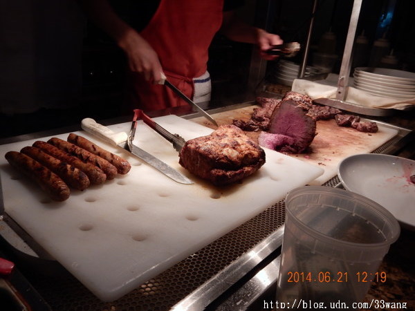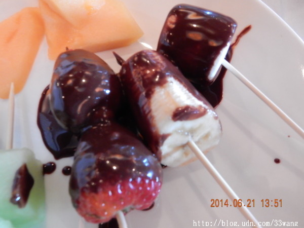 大概不是重要節日,座位沒有坐滿。我們邊吃邊聊,待了足足三小時,每人來回裝了幾次食物。(有選擇性的,不會每樣都裝進肚子)。第一次使用淋巧克力的機器,童心大發,連香蕉也去蘸一下。