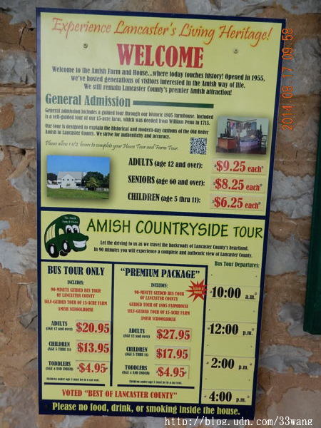 去賓州的第二天參觀了阿米西農場。在接待處買了票,九個人搭上小巴士,由司機兼導遊帶著沿路看風景。因為是主日,阿米西人都要作禮拜,然後進行社交活動,所有他們經營的商業都不開放。