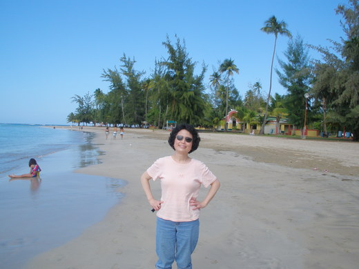波多黎各四面環海,除了幾個港口和小部分岩岸,其餘都是沙灘,很多是沒有人管理的。下了高速公路,兒子不確定走得對不對,找當地人問一下,我們這才發現他的西班牙文已經可以應付日常生活了。其實小路旁不遠就是海邊,但不能隨便穿過椰林。