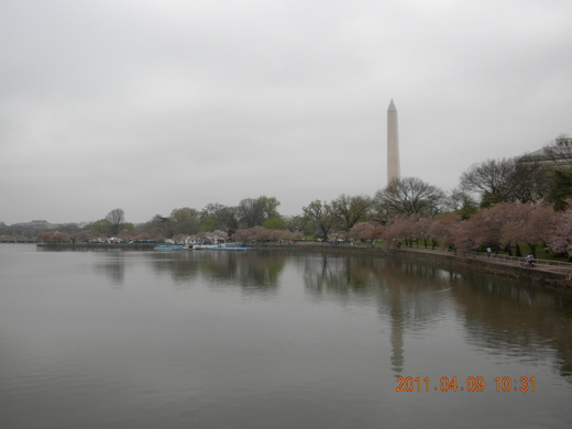 星期六(4月9日)去看花。華府街道和公園的櫻花很多,我們只想沿潮汐湖四周觀賞。搭地鐵的時候遇到一些年輕人,他們在前一站下車,是去看櫻花節遊行的。我們還是先看花,雖然謝掉很多,不同顏色和層次的花樹,配著湖光雲影,風景仍然秀麗。