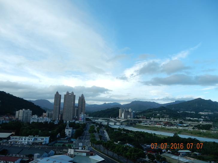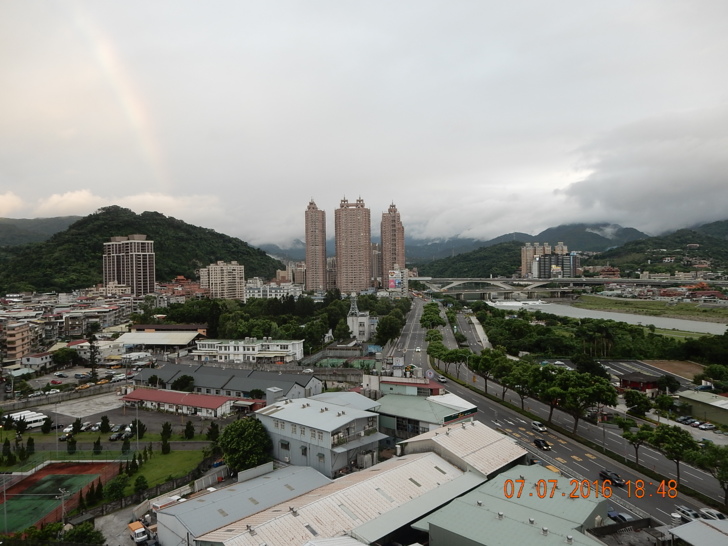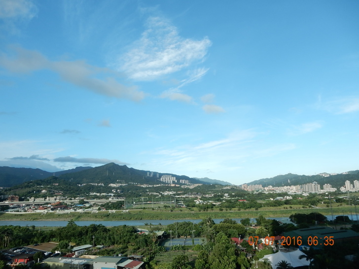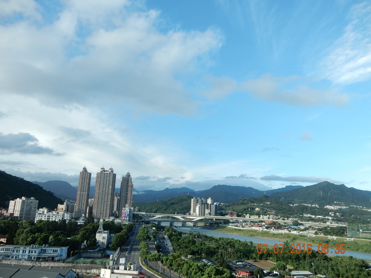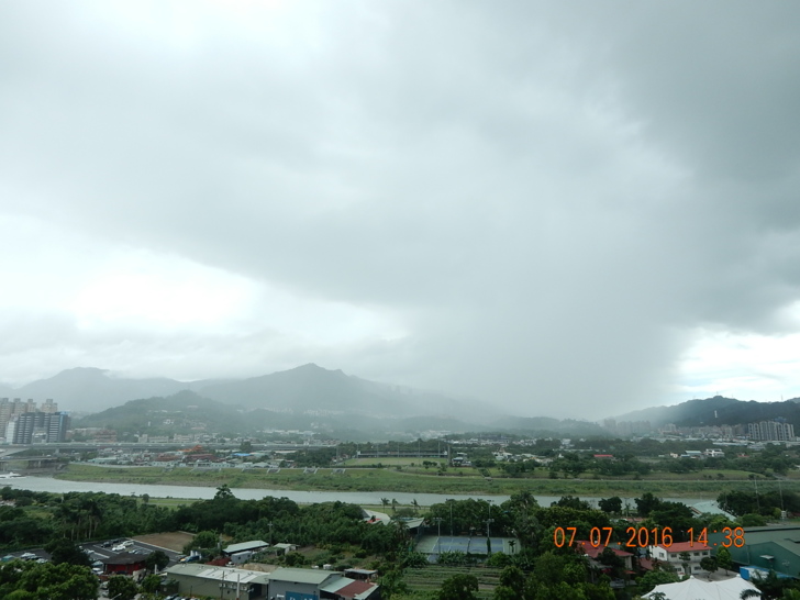 颱風主要在南部肆虐,台北只有短暫的強風暴雨。這是在風雨最強的時候拍的,河對岸大約五公里遠的山都看不見了。