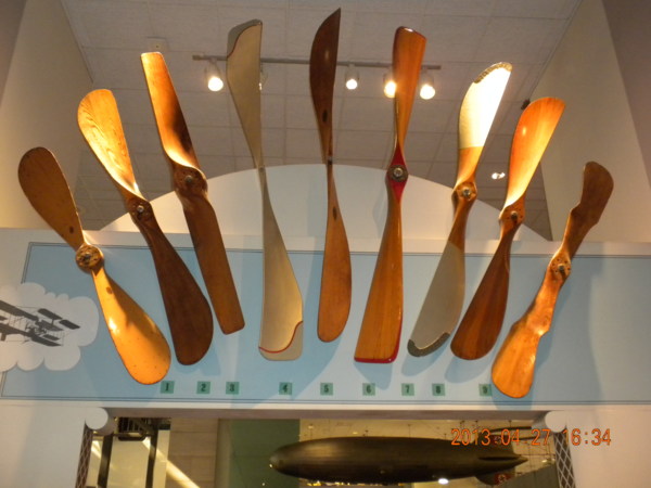 當時的飛行員很多也是飛機設計師,大多數自己會修飛機。博物館展示了這樣的工作室和早期飛機使用的各型螺旋槳。