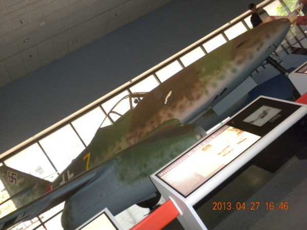 飛機發明沒有多久,各國就體會並充分利用了它的軍事用途,而戰爭也促成航空工業的發展。1939年納粹德國首先試飛成功亨克爾(Heinkel)He 178噴射機。博物館中展示了二戰末期德國使用的噴射戰鬥機梅塞施密特(Messerschmitt) Me 262「飛燕」(德語Schwalbe)和同期盟軍使用的飛機。不過更多二次大戰的飛機展示在史蒂文·烏德沃爾哈齊中心(Steven F. Udvar-Hazy Center)。