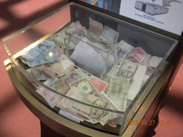 賽錢箱:參觀博物館免費,但可以自由捐獻,大廳中的賽錢箱儼然成了各國貨幣的展示櫃。