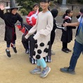 過年時我們起床晚了,他也進來敲桌子 (見以前寫的《拜年囉!》)。