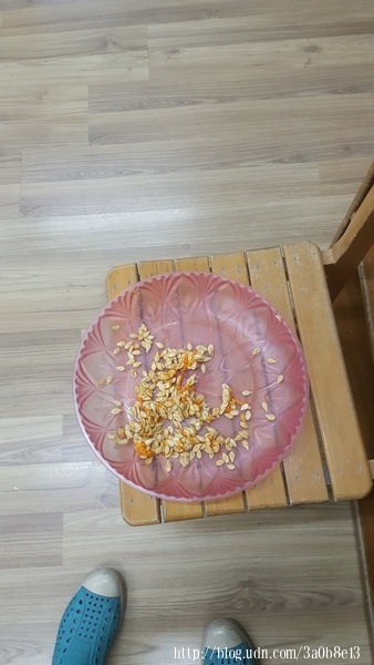 下面的南瓜籽是由廚房阿姨今天煮的南瓜湯所挖下來的南瓜籽