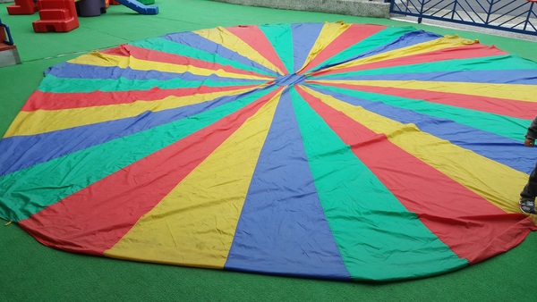 不然孩子們在玩氣球傘的時候真的非常容易跌倒或著是被踩到
