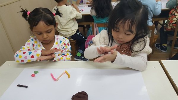所以小閔就買了好多五顏六色不同的黏土讓孩子玩