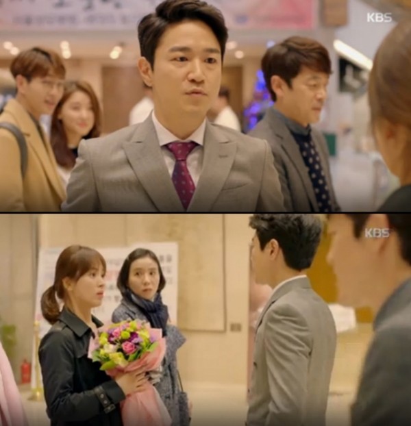 太仁鎬(上圖)在韓劇《太陽的後裔》飾演醫院理事長,積極追求宋慧喬(下圖左)。(翻攝自Naver)
