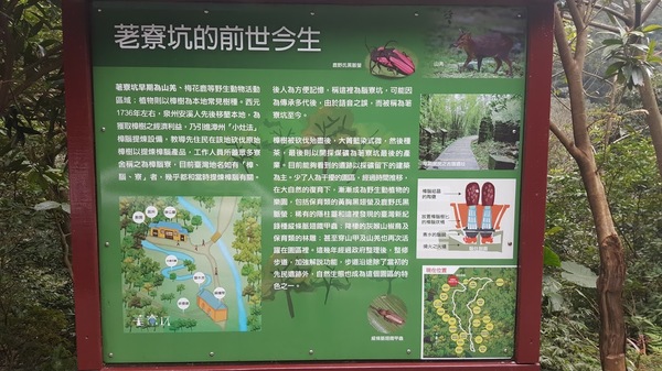 現場解說牌並且提到「1736年左右泉州安溪人先後移墾本地砍伐樟木提煉樟腦」等。而網路作家放羊的狼則提供另一種說法:道光30年(1850)...清廷武力鎮壓太平天國歷時14年,戰事期間生靈塗炭,使得閩南沿海一帶人民因避戰禍而往外遷徒,此時另一批泉州安溪人,在周家給予3年免租優惠的召募下,遠離戰亂的家鄉來到了暖暖,但平地已無落腳處,便往東勢溪上游進行拓墾,產生石洞內聚落。...荖寮坑以前盛產樟木,於是先民砍伐樟木提煉樟腦,成為主要的經濟產物。