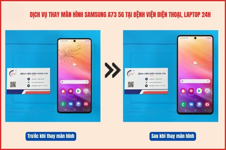Khi màn hình Samsung A73 5G của bạn gặp sự cố, bạn có thể sẽ thắc mắc dịch vụ thay màn hình Samsung A73 5G bao nhiêu tiền? Tại Bệnh Viện Điện Thoại, Laptop 24h, chúng tôi cung cấp dịch vụ thay màn hình Samsung chính hãng với mức giá hợp lý và chất lượng vượt trội. Hãy cùng tìm hiểu chi tiết về dịch vụ thay màn hình Samsung tại chúng tôi và cách bạn có thể sử dụng dịch vụ này.