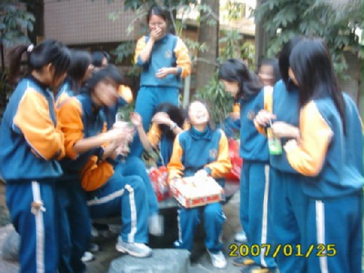 樓上、週遭有不認識的班級好奇的眺望著﹐壽星會害羞 !
