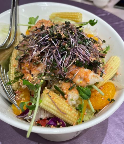 這一碗沙拉裡面有玉米筍、日本萵苣、