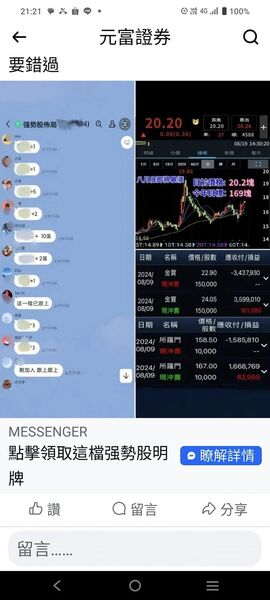 在你一開始加入時,可能還對群組裡的老師半信半疑。為了騙取你的信任,他們通常會先報一檔冷門、成交量低、股本小的股票,由於股價較好操作,當詐騙集團在20、30個投資群組對裡面的幾百、幾千人喊了以後,它的股價還真的可能被學員誤打誤撞給買上去,反而讓更多學員相信「老師」。