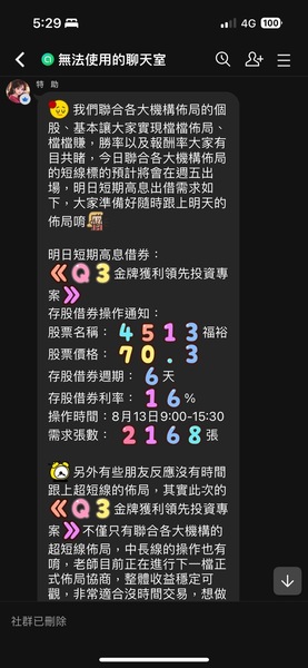 又或者是每天發布「今日盤中飆股」但如果想要知道確切是哪一檔,就要加入另一個Line群組領取
