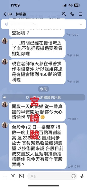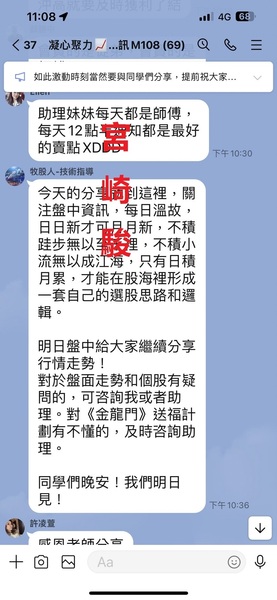 這樣的群組裡除了會公布他們推薦的股票,如何進出場之外,裡面還會有很多詐騙集團的樁腳,在裡面感恩老師,說自己真的賺到錢