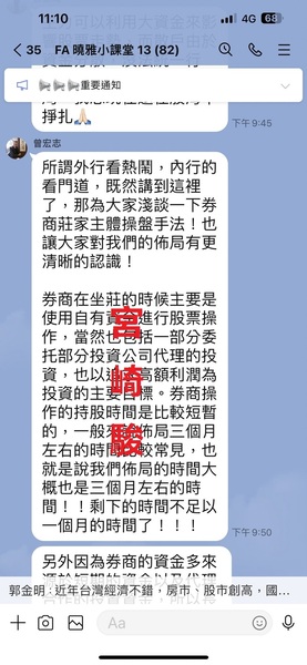 在你一開始加入時,可能還對群組裡的老師半信半疑。為了騙取你的信任,他們通常會先報一檔冷門、成交量低、股本小的股票,由於股價較好操作,當詐騙集團在20、30個投資群組對裡面的幾百、幾千人喊了以後,它的股價還真的可能被學員誤打誤撞給買上去,反而讓更多學員相信「老師」。