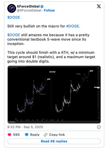 有分析師認為,DOGE 不僅有望重回 $0.7316 ATH,更可能突破新高。