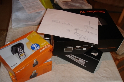 話說我07年剛到法國安家後的第一件事不是吃飯哈酒,而是開通網路,所以從旅館搬到自己的中世紀小窩後,立即找了離家最近的電話公司Orange,我選用了每個月29.9歐元的package- 含電話、livebox(接電腦)和décodeur(接電視)。可以接8 mégamax網路(含無線網路)、網路電話(可在法國境內免費撥打)和有線電視,網路開通費另加27.5歐元(還是學生價哩 )。