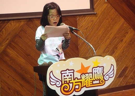 最近,她又入選參加校外的「英文朗讀比賽」,所以每天她會主動練習,我們也被迫要一直聽她嘰哩瓜啦,當然接下來星期天的一大早也就得不情願的起床去聽她比賽。起先我對冗長的程序非常感冒,加上沒睡飽的我哈欠連連,心裡頭暗罵著這種活動搞累的不只是學生,也搞累父母,當然也慶幸自己只是插花的小阿姨。