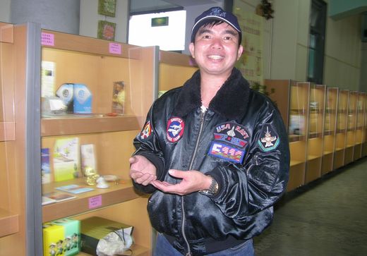 色,臨時找認識的遊客洽商出讓紀念卡給他,他如獲至寶一再道謝,