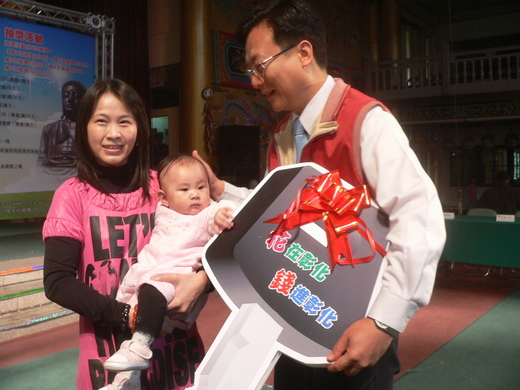 第二次抽獎活動,當和美鎮陳姓頭獎得主,接受縣長卓伯源當場CALL