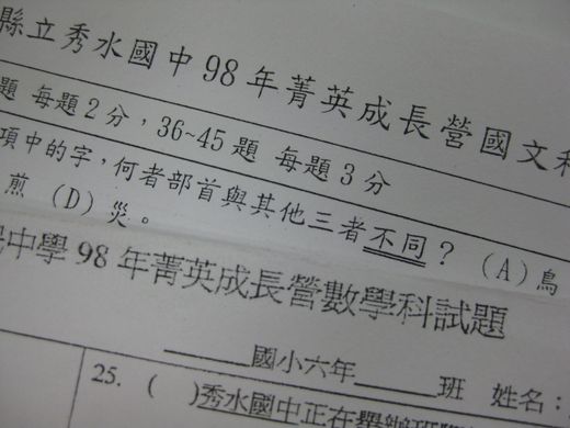 【記者唐復年、簡慧珍/彰化報導】彰化縣秀水國中最近舉行菁英成長營,安排國文、數學競試,有家長把試題寄給彰化縣長及教育部長,「請問縣長、部長,你們會幾題?」質疑學校做法是要逼窮人家小孩也得去補習。