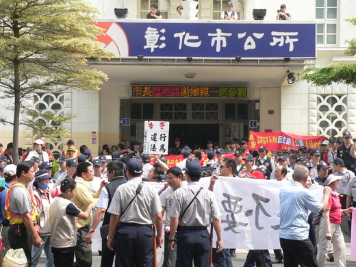 隨即一路舉白布條、呼口號到市公所抗議,不過,也有支持市公所的