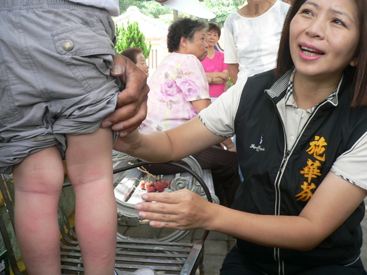 花壇鄉岩竹村的小黑蚊為害嚴重,她與將投入縣議員選舉的兒子黃健
