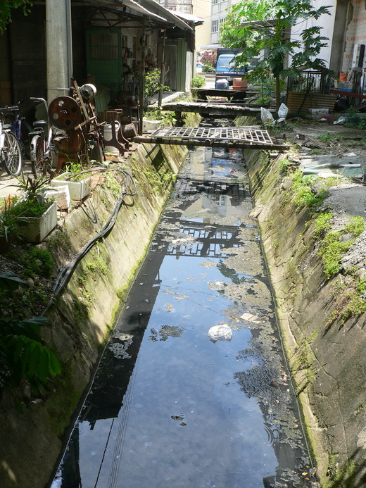 住家及工廠廢水任意排入、垃圾漂流,時時瀰漫著惡臭,則是何其不