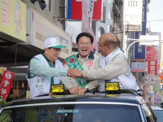 ,特地南下陪同彰化市長候選人邱建富進行車隊掃街,向彰化市民推薦邱建富,不到兩個禮拜,前行政院長蘇貞昌再次南下陪同市長候選人邱建富,陪同邱建富掃街拜票,