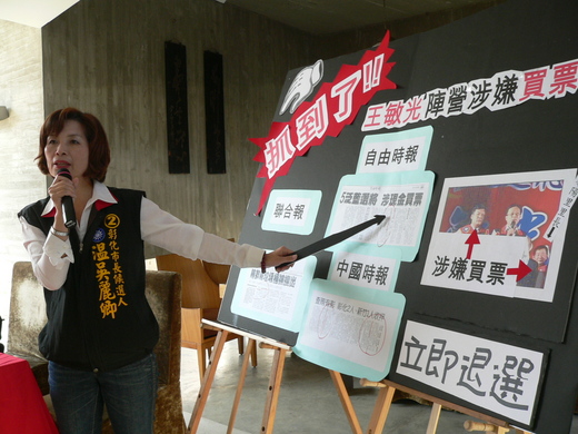 涉嫌買票?」的字眼,並附有剪報,她說,王敏光陣營企圖以買票方