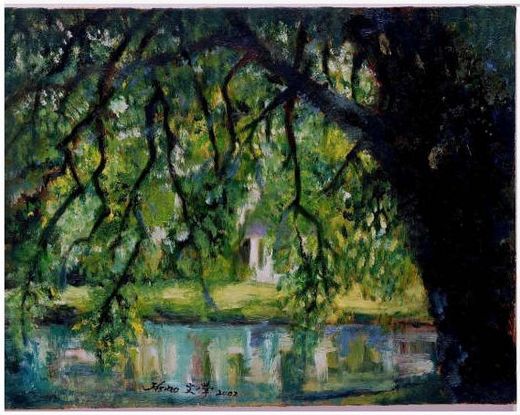 學紐西蘭基督城完成的「雅芳河畔」油畫作品,也是今年月曆唯一的