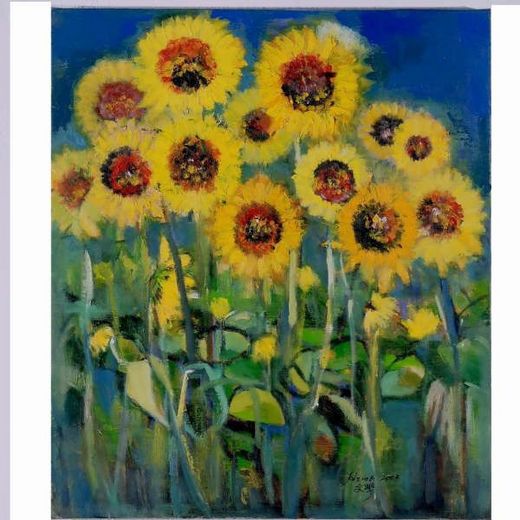 向光明燦爛」向日葵油畫,也是蕭文學的作品。