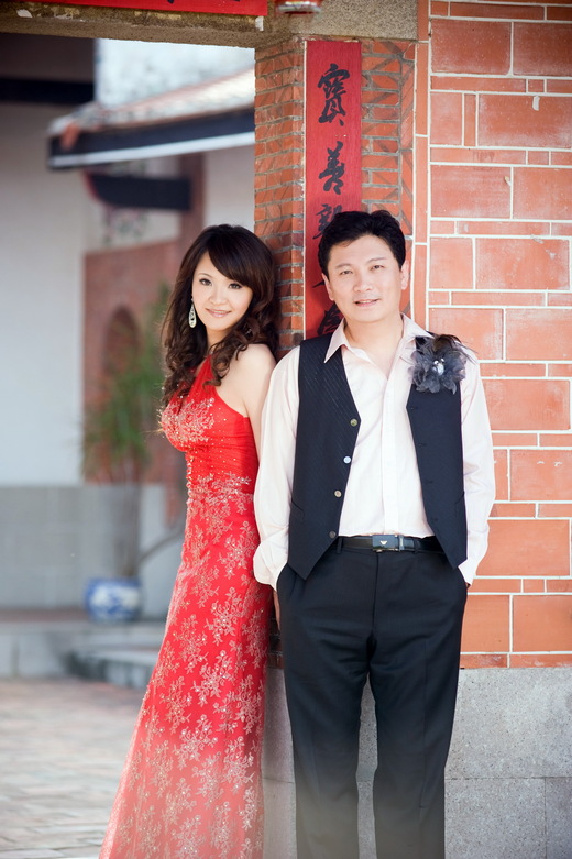 這對新人在台灣民俗村,舉辦訂婚、結婚及歸寧「三合一」儀式,同時