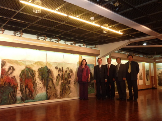 陳列室,舉辦師生聯展,特殊的流墨技法,引人入勝。