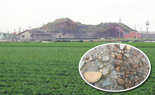 彰化縣芳苑鄉新街村台17線旁的農田,被人堆放兩座大土堆,約有三層樓高拔地而起,十分突兀。村民昨天說,是許姓業者向農民租地堆置廢土,已有一、二年時間。經環保局人員稽查,確認業者有堆放爐渣,也已令業者清除完畢。