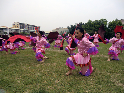 特教組長張珮娣說,她與編舞的家政科主任蓋琪君討論好幾天,才想到以「農村high歌慶百年」為主題參賽。