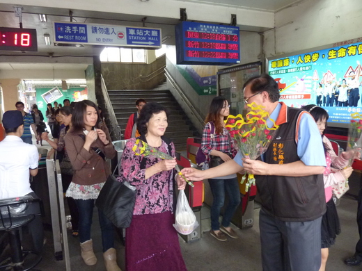 彰化縣政府在彰化火車站送康乃馨。(有影音)