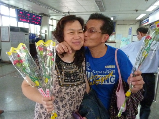 馨花束時,都有意外欣喜,有一對夫妻各拿了一束,老公還擁抱老婆