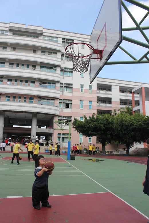 球架對她來說,是非常的高,但她一點都不畏懼,很喜歡投籃;因為