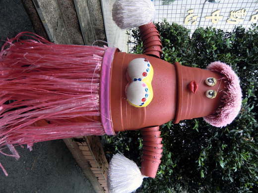 彰化縣田尾鄉溪畔社區是鄉內最小的村落,居民全心投入社區營造,不僅落實社區福利,優美環境也讓人賞心悅目。今年再度入選彰化縣福利社區化社區,昨天縣府人員到場評鑑評價頗高,居民以竹管砲迎賓,並秀出盆器製做的逗趣人偶,吸引眾人目光。 溪畔社區總幹事張陳玉幼說,溪畔社區大部分的面積與田尾公路花園重疊,不少遊客到田尾遊玩立刻被美麗花朵吸引,卻對溪畔社區特色一知半解。為了吸引遊客目光,志工集思廣益,利用廢棄盆栽盆器,創造出多個「夏威夷比基尼」人偶,將放在社區重要據點當作入口意象。 她說,志工們臥虎藏龍,利用大盆器做成身體與頭部,小盆器堆疊出手臂、雙腳及凸出的胸部,再用彩繩做出頭髮及夏威夷彩裙,最後以彩繪增加鮮豔色彩,逗趣人偶張開雙臂迎賓「阿囉哈!」,居民個個笑得和不攏嘴「一定讓人過目不忘」、「有夠古錐。」 溪畔社區理事黃金治說,大家一起營造社區心情十分愉快,她手不靈巧,天馬行空出主意,人偶穿上比基尼泳衣就是她的怪點子,沒想到效果極佳,「創意做環保,快樂心不老。」 【2011-05-18/聯合報/B1版/彰投.運動】 |