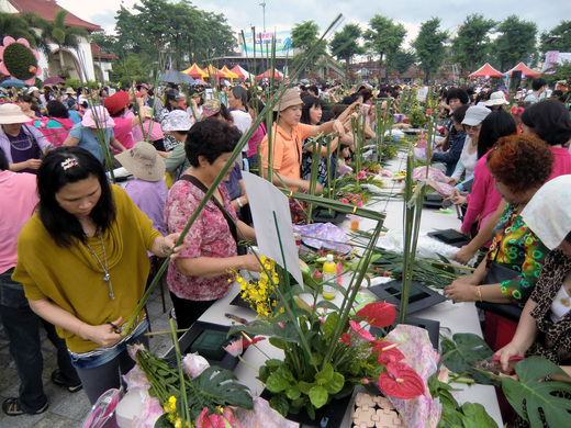 受到日本311地震海嘯影響,台灣外銷日本的花卉數量銳減且轉成內銷,為了刺激國產花卉需求,農委會今年3月起舉辦全國萬人插花系列活動,彰化場次昨天在田尾公路花園怡心園熱鬧登場,吸引1500多人參加,氣氛熱絡更勝綿綿細雨。 彰化縣中華花藝設計協會多名專業插花老師,教導民眾香水百合、火鶴、太陽花等新鮮花材的插花技巧,大小朋友玩得興高采烈。花卉買一送一促銷活動也吸引民眾大排長龍。 來自彰化市的陳樹輝第一次插花,看到現場花團錦簇,一時心癢報名參加「感覺很新鮮有趣」。以前都由妻子負責花藝布置,有了插花經驗,可與妻子「一起製造浪漫氣氛。」 田尾鄉80歲阿嬤陳郭好疑專注地聽老師指導最新插花技巧,她說,以前都是玩票性質,專業指導的作品更有層次、美感。這次田尾花卉受到日本災害影響甚鉅,她每個月增加一次買花次數,鼓勵民眾一起多買花,轉換心情與家庭氣氛。 農糧署長陳文德說,台灣花卉產值每年約有132億元,有36%的花卉外銷到日本,日本311地震海嘯造成台灣銷日花卉受創不輕。 他指出,國人平均每年買花費用500元,只達日本的五分之一,民眾買花風氣仍有很大進步空間。萬人插花活動下周將在宜蘭舉辦最後一場。 彰化縣長卓伯源戴著花冠參加活動,他說,彰化縣苗木、花卉產量居全國之冠,希望民眾都能在家裡擺上一盆花,增添生活花藝氣息。縣府會努力推廣花卉,培養民眾常態性買花的習慣,增加花農收益。 【2011-05-23/聯合報/B1版/彰投.運動】 |